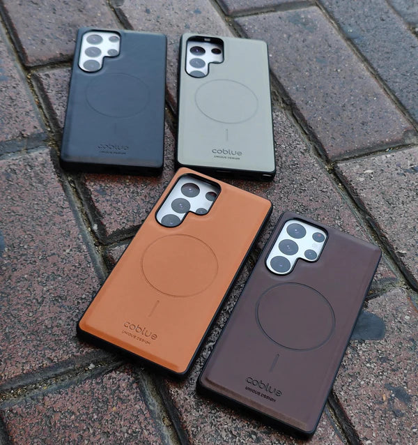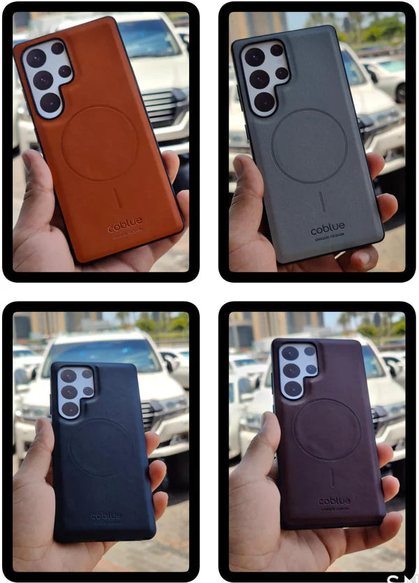 Coblu Leather MagSafe Case – A sleek and elegant case crafted for Samsung Galaxy Ultra models, featuring MagSafe-style magnetic support and a premium leather-textured finish.