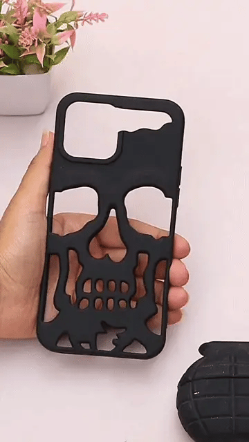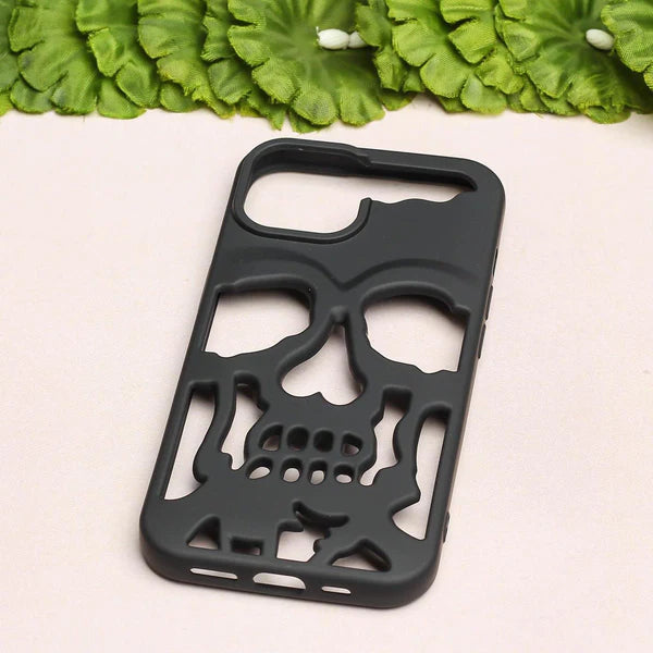 ✔ Raised skeleton pattern – Cutouts form a stylized skull and bones motif, letting the phone’s color show through for contrast.